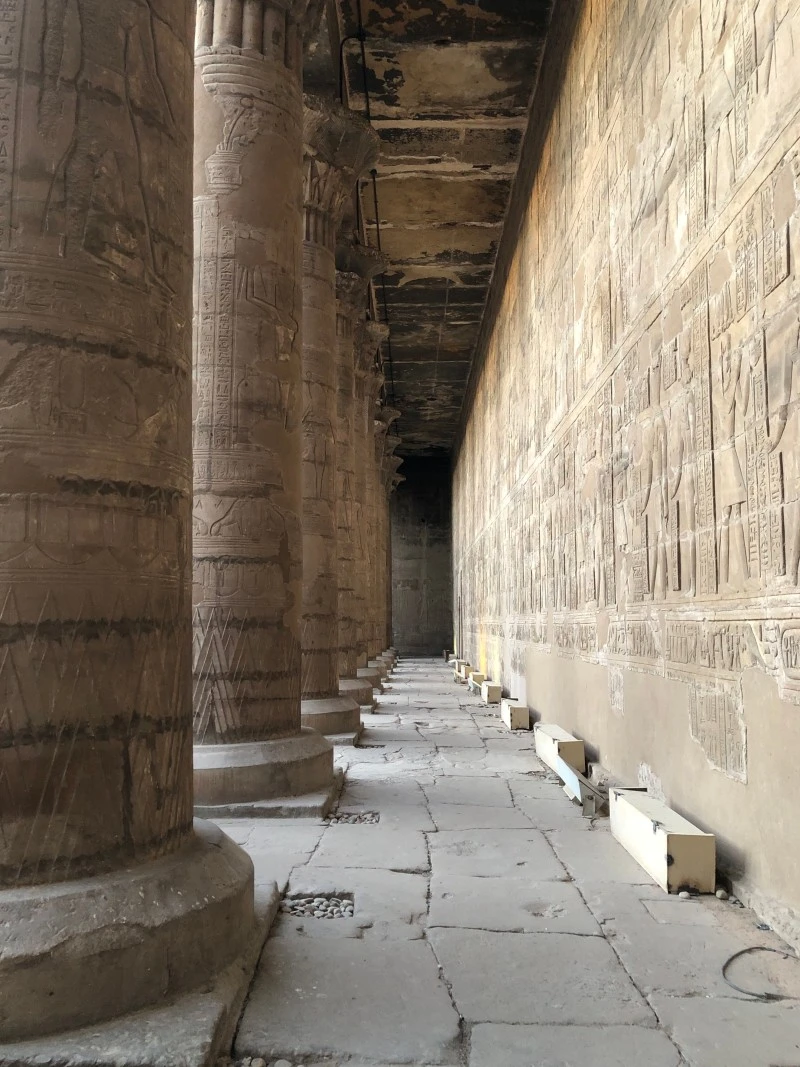기원전 237년 프톨레마이오스 3세가 건립을 시작해 여러 왕을 거쳐 57년 완공된 신전. 오랜 시간 지어진 만큼 카르낙 신전에 이어 역대 신전 중에 두 번째로 규모가 크다.
