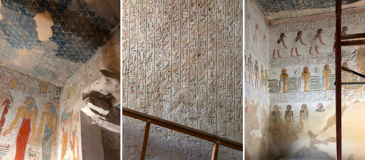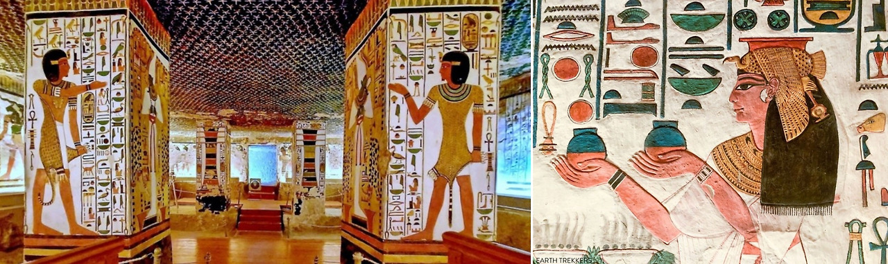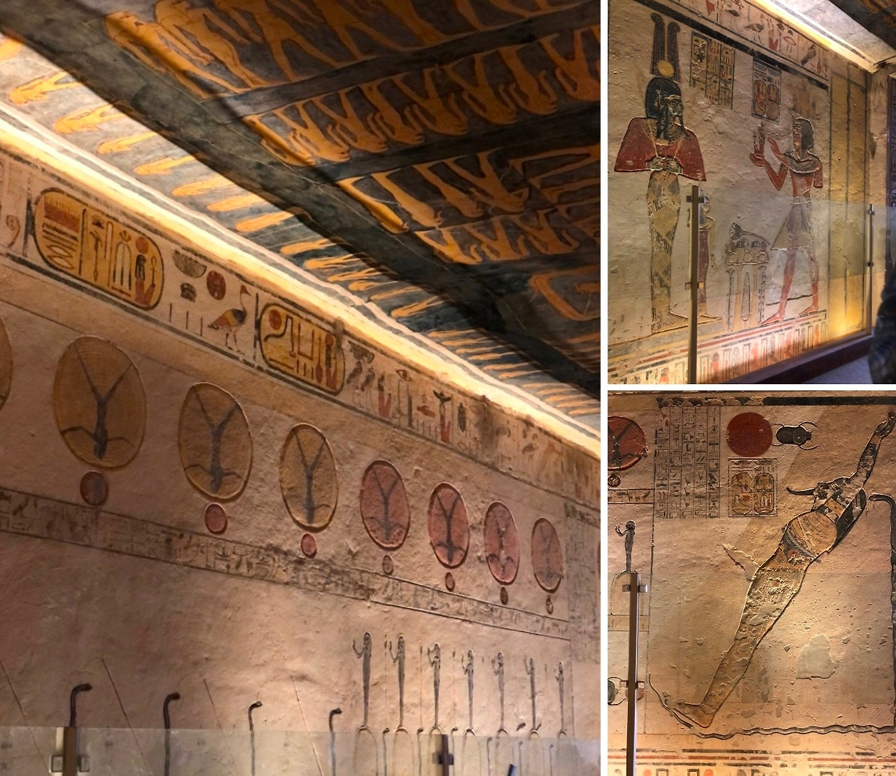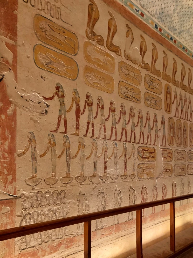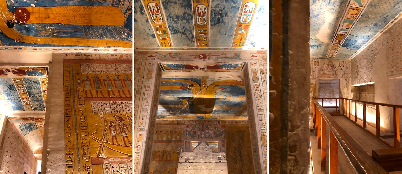 다음은 람세스 9세. 신왕국 제20왕조 8대 파라오로 람세스 3세, 람세스 11세 다음으로 오랫동안 재위한 군주. 당시 파라오들은 즉위와 함께 자신의 무덤을 만들었기 때문에, 오랜 시간 재위한 람세스 9세의 무덤은 그만큼 디테일한 장식이 많고 규모도 크다. 컬러풀한 벽화가 정말 멋졌던!