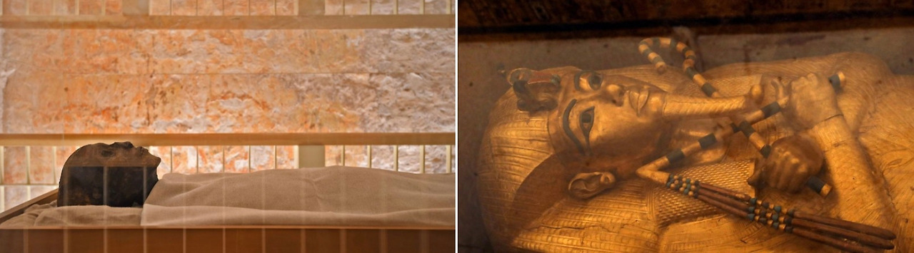 물론 실제로는 대부분의 무덤이 도굴되었다. 무덤을 만들던 작업자들이 미리 표시해 둔 뒤 도굴을 했다는 이야기도 있고, 입구와 도굴로를 동시에 만들었다거나 브로커 역할을 했다는 설도 있다. 어찌 되었든 그중에서도 도굴당하지 않고 온전하게 발견된 무덤이 있는데, 바로 투탕카멘의 무덤(KV62)이다.