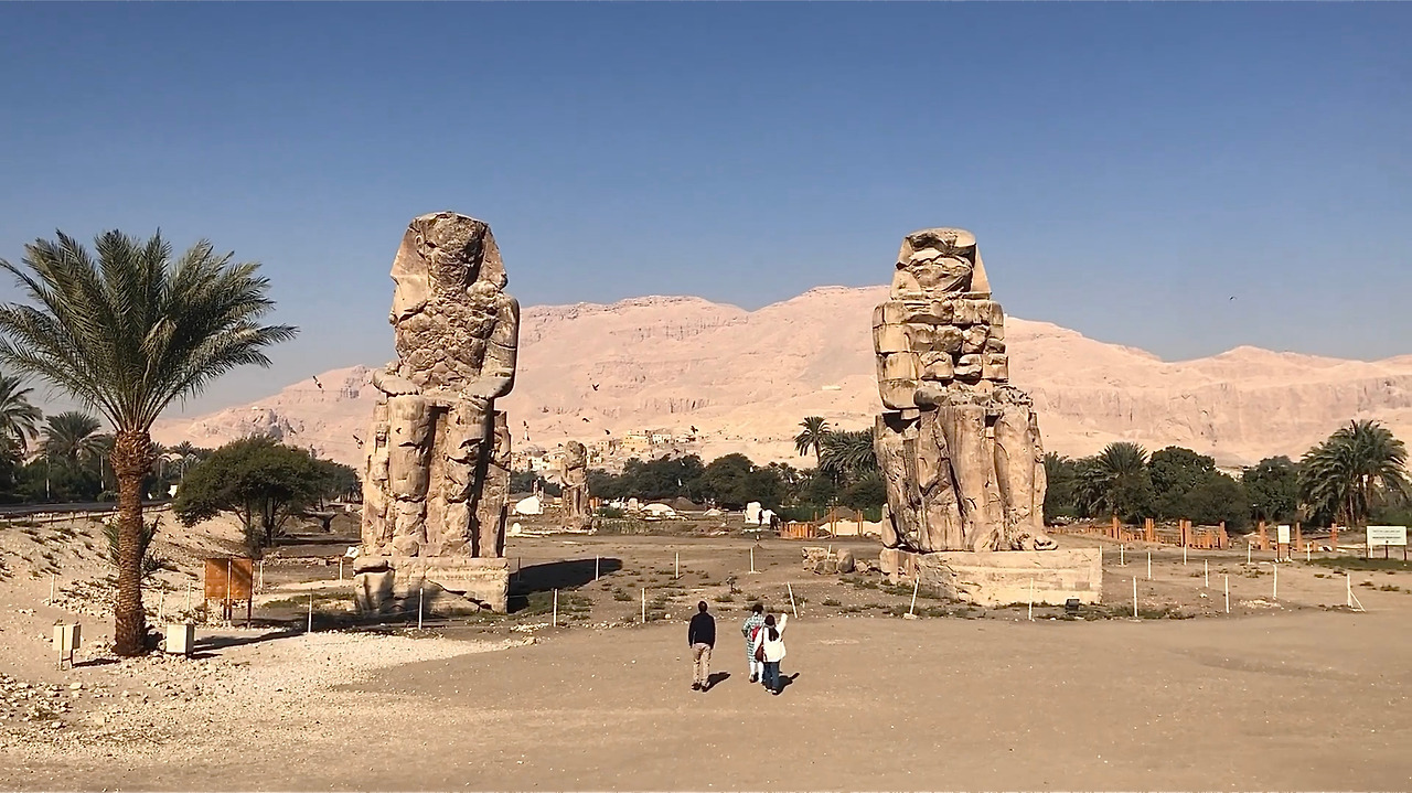 오전 10시, 룩소르에 도착해 가장 먼저 마주한 건 멤논의 거상. 3400년 전 만들어진 두 조각상은 파라오 아멘호테프 3세의 거대한 신전 정문에 서있던 것으로 폐허가 된 장제전에서 유일하게 살아남았다. 우리나라 정승처럼 룩소르 왕가의 계곡을 지키는 장군의 의미이다.