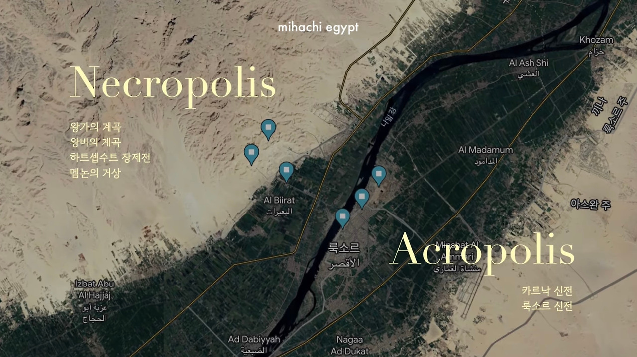 이집트는 나일강을 기준으로 구분해 살아왔다. 서쪽은 죽은 자들의 땅, 네크로폴리스 Necropolis, 동쪽은 산 자들의 땅, 아크로폴리스 Acropolis. 룩소르 역시 동안과 서안으로 유적들이 나뉘어 있다. 우리는 나일강을 넘나들며 서쪽에서는 무덤을, 동쪽에서는 신전을 둘러볼 예정이다.