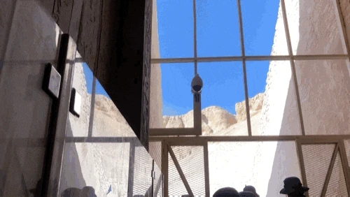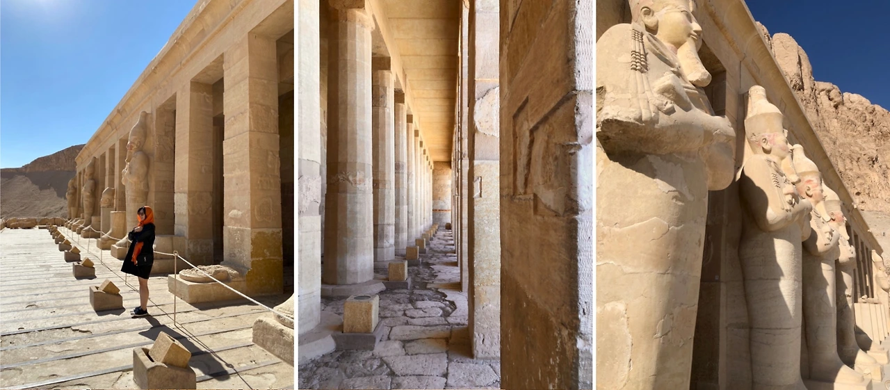 3층 테라스를 지키는 오시리스 기둥을 볼 수 있다. 원래는 26개 기둥 모두에 서있었을 오시리스. 지금은 8개만이 남아있다.