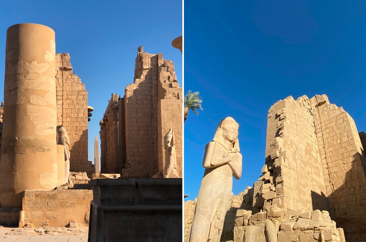 정문을 지나면 람세스 2세의 석상이 서있고, 저멀리 오벨리스크가 보인다. 그리고 카르낙 신전의 중심이자 하이라이트, 대열주랑을 마주한다.