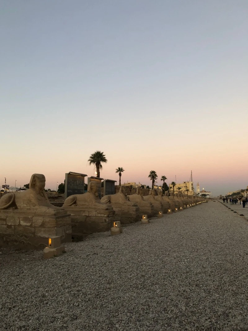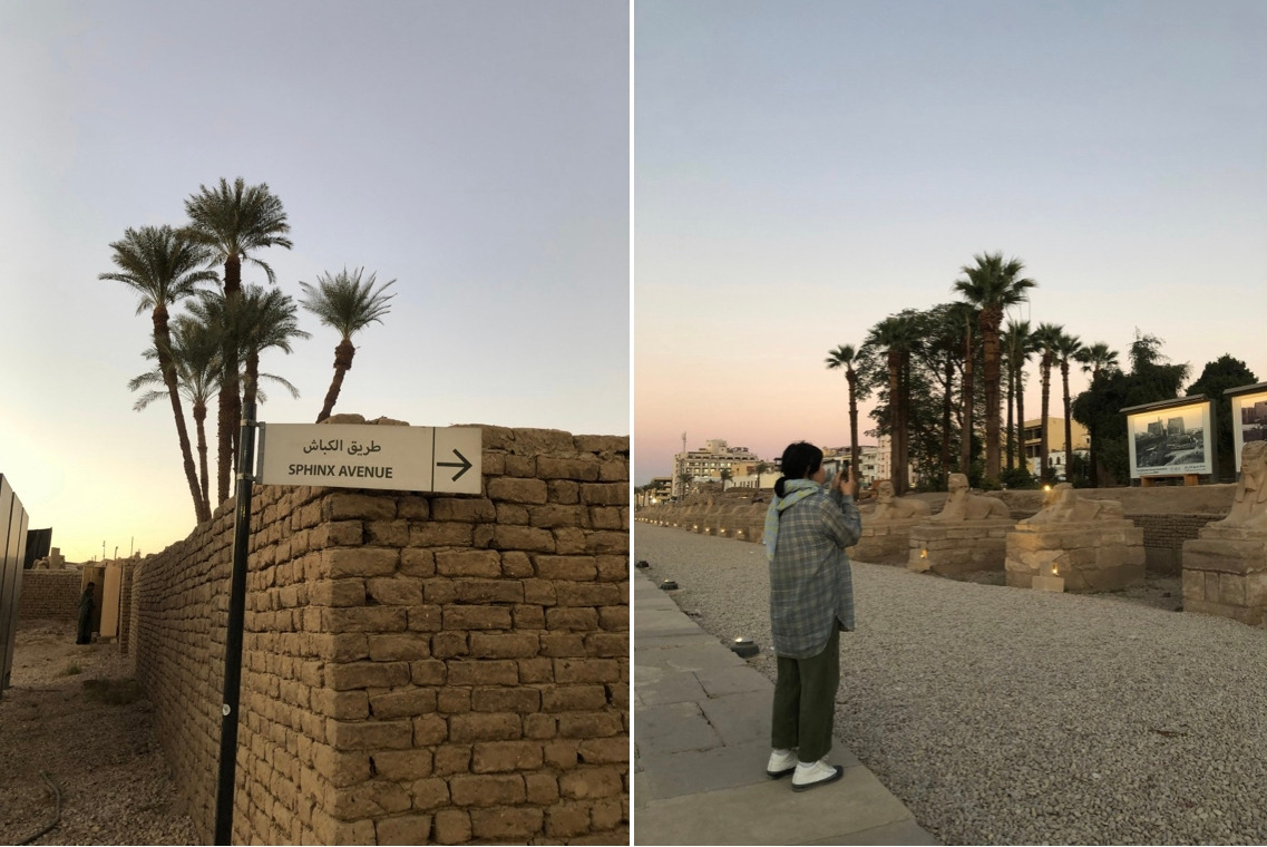 카르낙 신전 남쪽에 위치해 아문 신의 남쪽 궁전이라고도 불리는 룩소르 신전. 2.5km 정도 거리의 스핑크스 대로를 사이에 두고 연결되어 있다. 양옆에 쭉 이어진 스핑크스들은 대부분 파괴되어 35개 정도만 남았다고 한다.