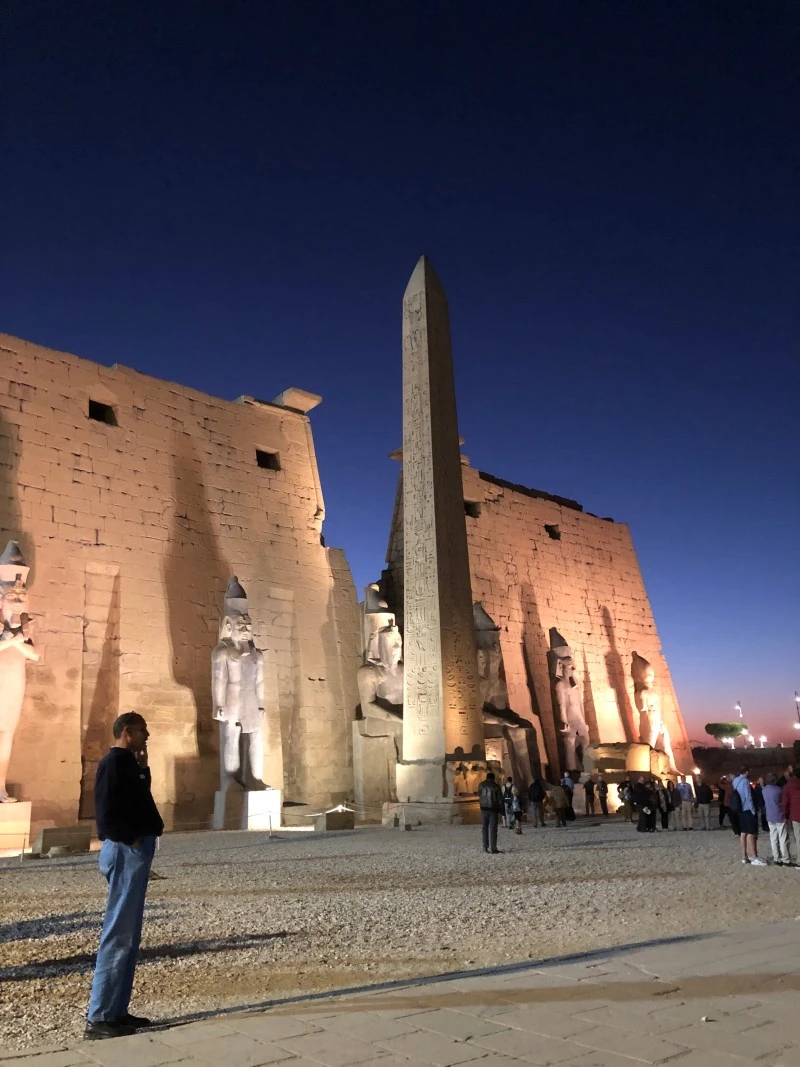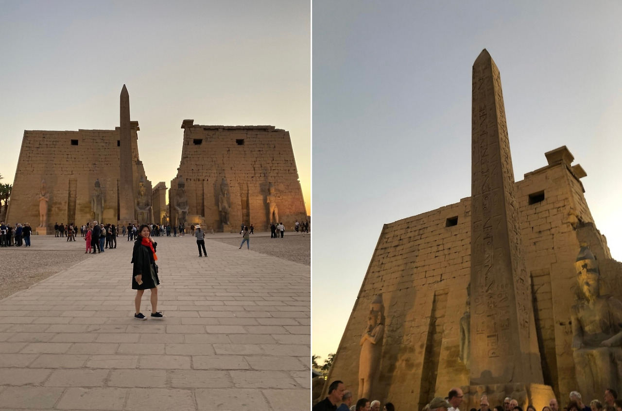 해질녘 도착한 룩소르 신전. 정문에는 23m 높이의 오벨리스크가 서있는데 1830년 오스만 이집트 정부가 프랑스 파리에 선물했고, 현재 파리 콩코르드 광장에 서있다.