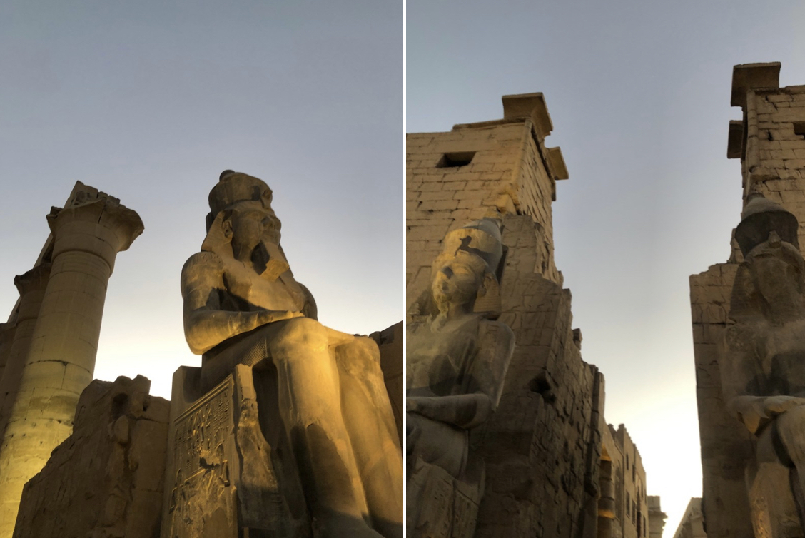 카르낙 신전에 비하면 신전 규모나 감동은 덜했지만 해질녘이라 보이는 모습들이 있었다. 기둥의 윤곽이나 탑문의 형태가 해질녘의 하늘을 배경으로 더욱 잘 보였다.