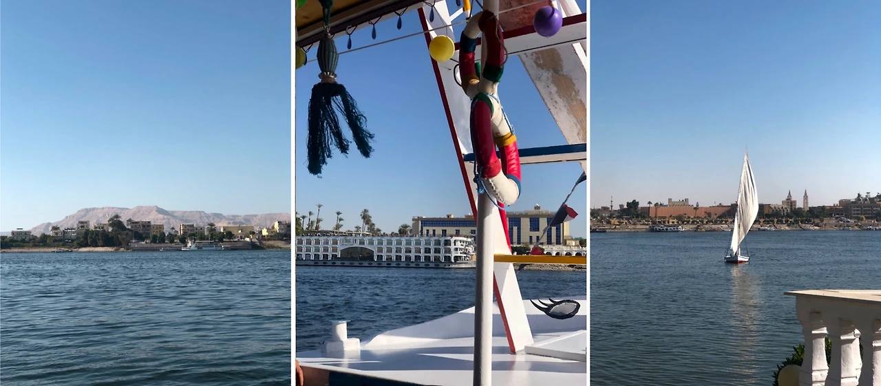 그래도 강 건너로 보이는 동안의 뷰와 나일강에 떠있는 펠루카들은 아름다웠다. 펠루카를 타고 동안으로 이동한다. 버스를 타면 엄청 돌아가야 하기 때문에 우리가 점심 먹을 동안 버스는 동안으로 이동했다.