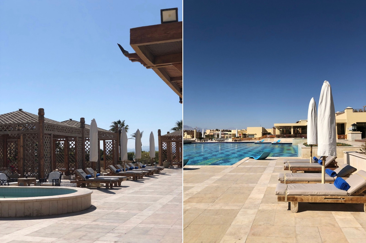 나름 겨울이라 수영복 챙길까 말까 스무 번 고민한 사람인데 챙기길 잘했다! 후르가다는 햇빛이 워낙 세기 때문에 수영해도 많이 안 춥고, 리조트에 따라 다르지만 겨울에는 온수풀로 운영하는 곳도 많다. 특히 바로 리조트 바로 앞이 해변이라 호텔 풀에서는 아무도 수영을 안하더라구여 (?) 내가 전세내고 놀았다 후후