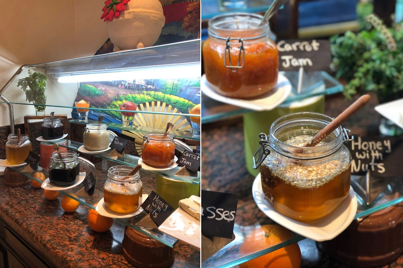 역시 디저트는 맛있었다. 식사 대용 빵부터 달달한 달달한 케이크 종류까지 다양했던. 특히 쉐라톤 리조트에는 이집트 대표 특산품인 꿀을 종류별로 먹을 수 있었는데, 요거트와 과일과 함께 아침으로 먹었다.