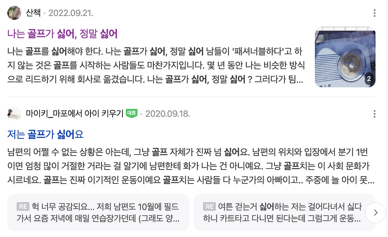 그래서 골프가 싫어져서 옷을 만들었어요. 골프가 싫은 사람들을 위한 옷이죠. 검색을 해보니 골프가 싫은 분들이 종종 눈에 띄었습니다.