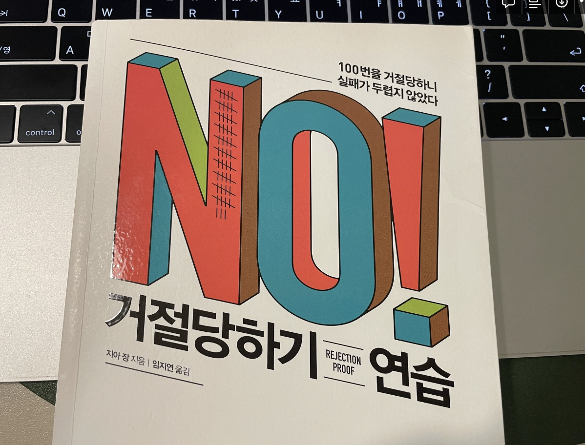 지아장이 쓴 '거절당하기 연습'이라는 책을 보며 거절이라는 키워드에 관심을 가졌고 연습을 통해 인생의 치트키를 찾았다고 할 정도로 효과가 좋았습니다.