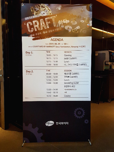 워크숍 포스터. 한국화이자의 교육 담당자분들은 작은 부분에도 공을 들이고 정성을 쏟아 준비했다는 것을 내내 느꼈다. CRAFT!