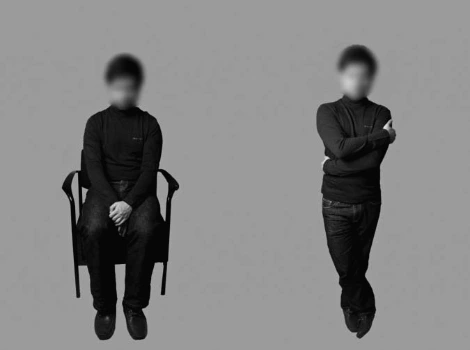 * B 그룹 - "low" -power-pose (고개를 숙이고 팔다리를 모으고 웅크린 자세)