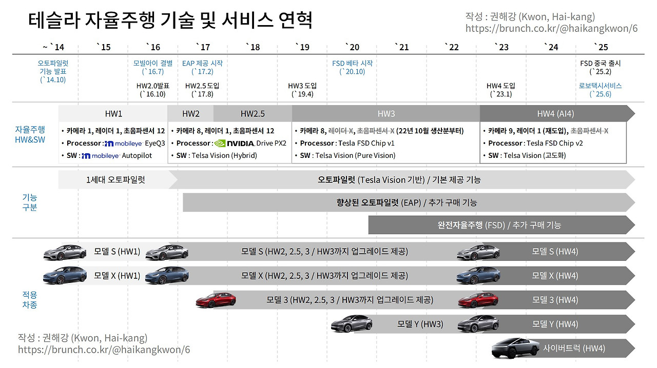 테슬라가 목표로 하는 10배 안전한 자율주행 기술을 개발하고 기능으로 제공하기 위한 지금까지의 과정은 다음과 같습니다.