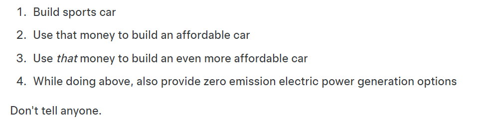 Tesla : The Secret Tesla Motors Master Plan (just between you and me)