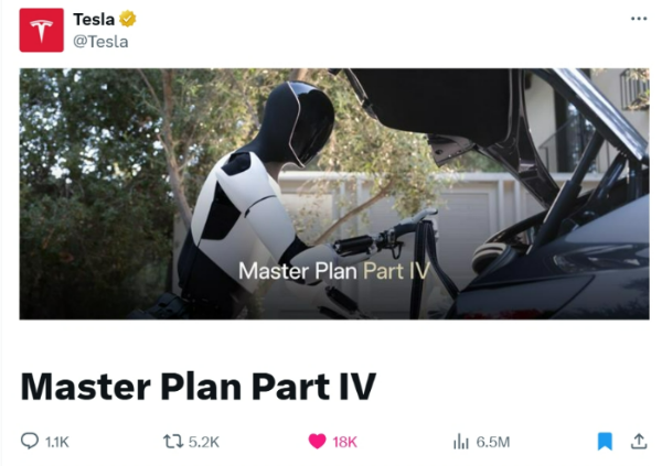 그리고 지난 9월 2일, X의 테슬라 공식계정에서 Master Plan Part 4 라는 제목의 포스팅이 있었습니다.