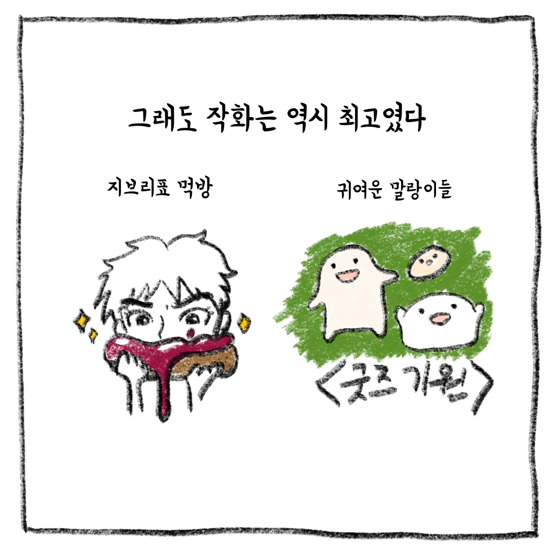 전체적으로 내용이 어려웠지만 미야자키 하야오 감독의 영화를 감독의 은퇴 전에 볼 수 있어서 좋았다.