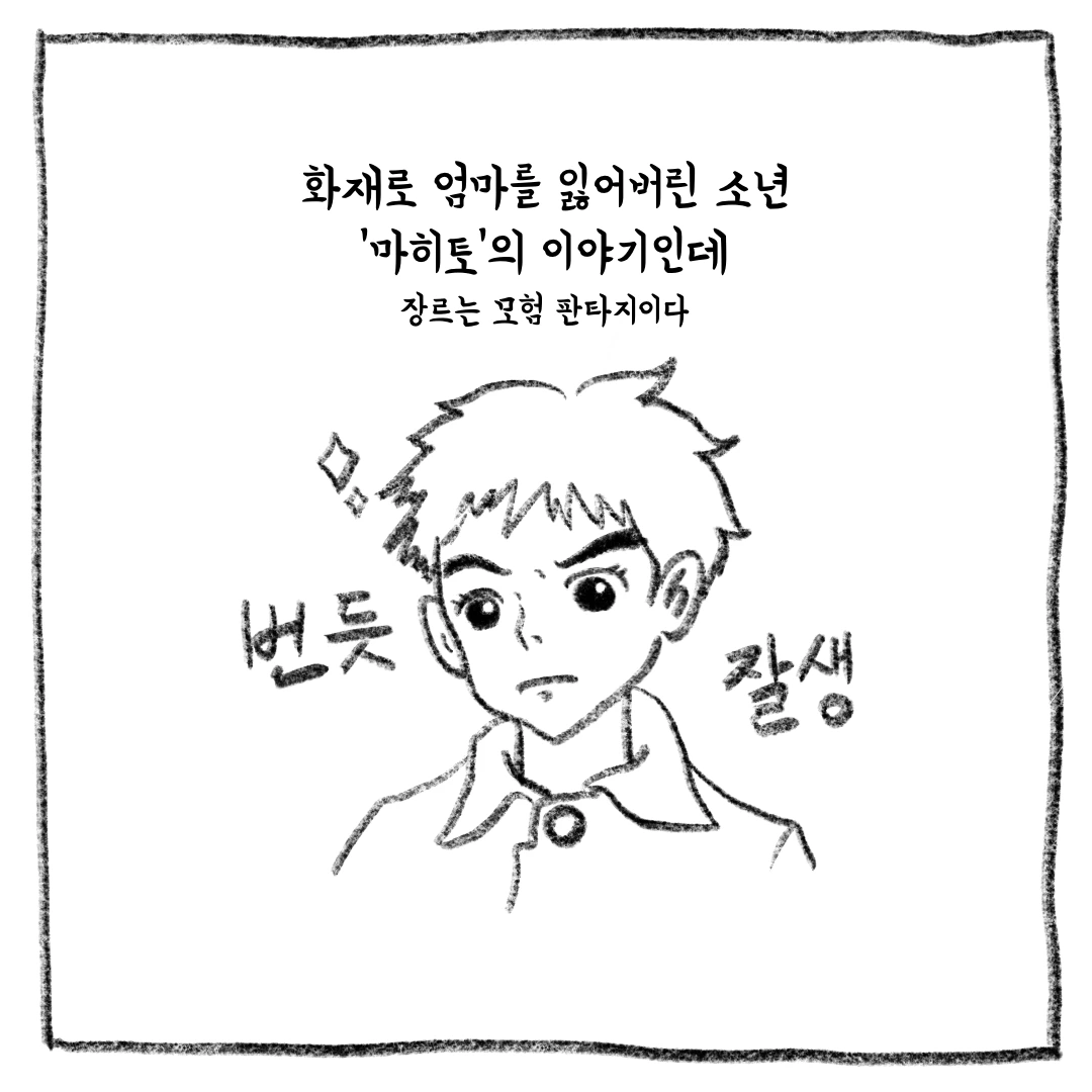 작중 마히토의 큰 할아버지는 마히토에게 본인의 일을 물려주고 싶어 하셨다. 영화를 보는 와중에는 계속해서 설득하는 부분이 굉장히 심오한 내용으로 가득 차있어 이해하지 못했지만, 지나고 생각해 보니 혹시 본인의 마음을 투영을 한 게 아닌가 하는 마음이 들었다.