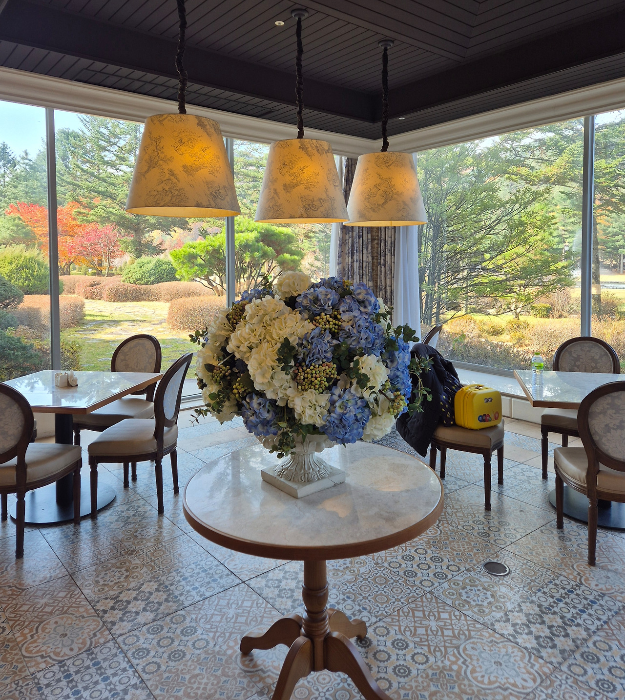 때는 바야흐로 평창으로 여행을 갔었던 때. 우리 일행은 켄싱턴 호텔에서 숙박을 하고 이튿날 체크아웃을 했다. 마침 호텔의 정원이 너무 예쁘게 꾸며져 파노라마처럼 펼쳐져 있었다. 그래서 정원 한 바퀴를 돌며 구경할 수 있는 미니 기차에 아이와 아이 아빠를 태워주고 나는 로비에 있는 카페로 향했다.