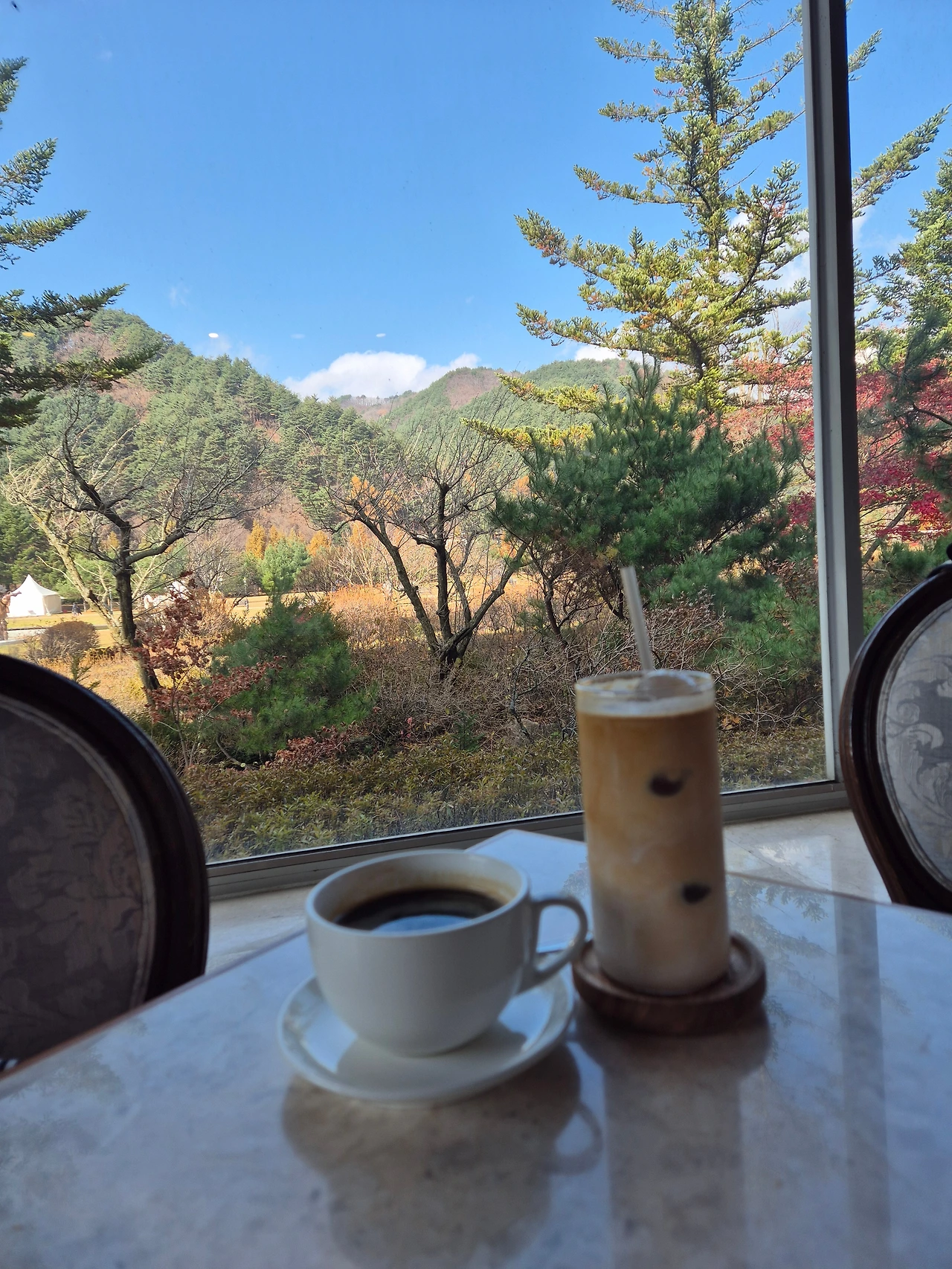 카페에 들어선 순간, 앤틱한 분위기의 카페는 가을산의 절경을 담은 액자 같았다. 알록달록 오색산의 풍경이 한눈에 들어와 커피 향과 함께 누리는 이런 호사가 따로 없었다.