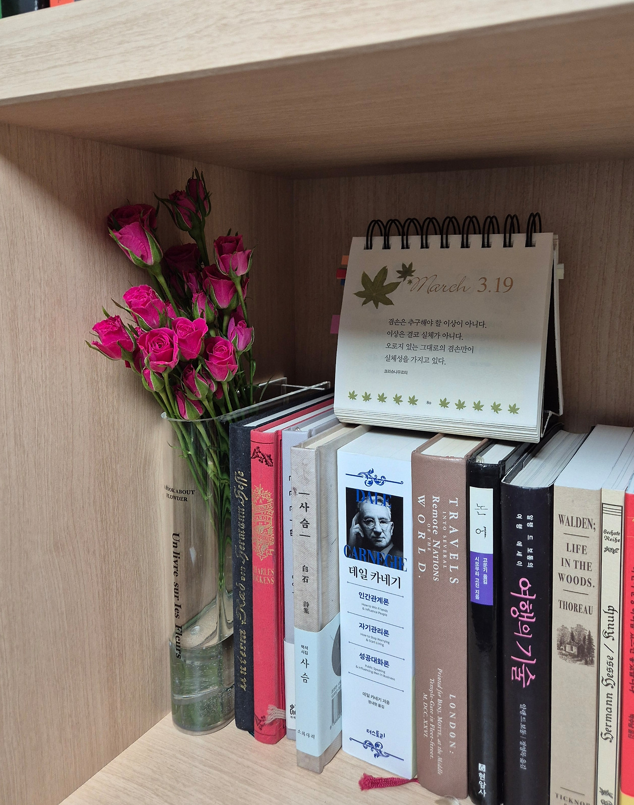 겨우 마음을 달래고 사온 꽃을 집안 곳곳에 두었다. 내 책상에도 봄이 와서 설레던 와중에 박완서 선생님의 책을 펼쳤다. 그런데 이런 우연의 일치란?! 마침 해당 페이지엔 박완서 선생님이 선물로 받으신 장미 이야기가 등장했다.