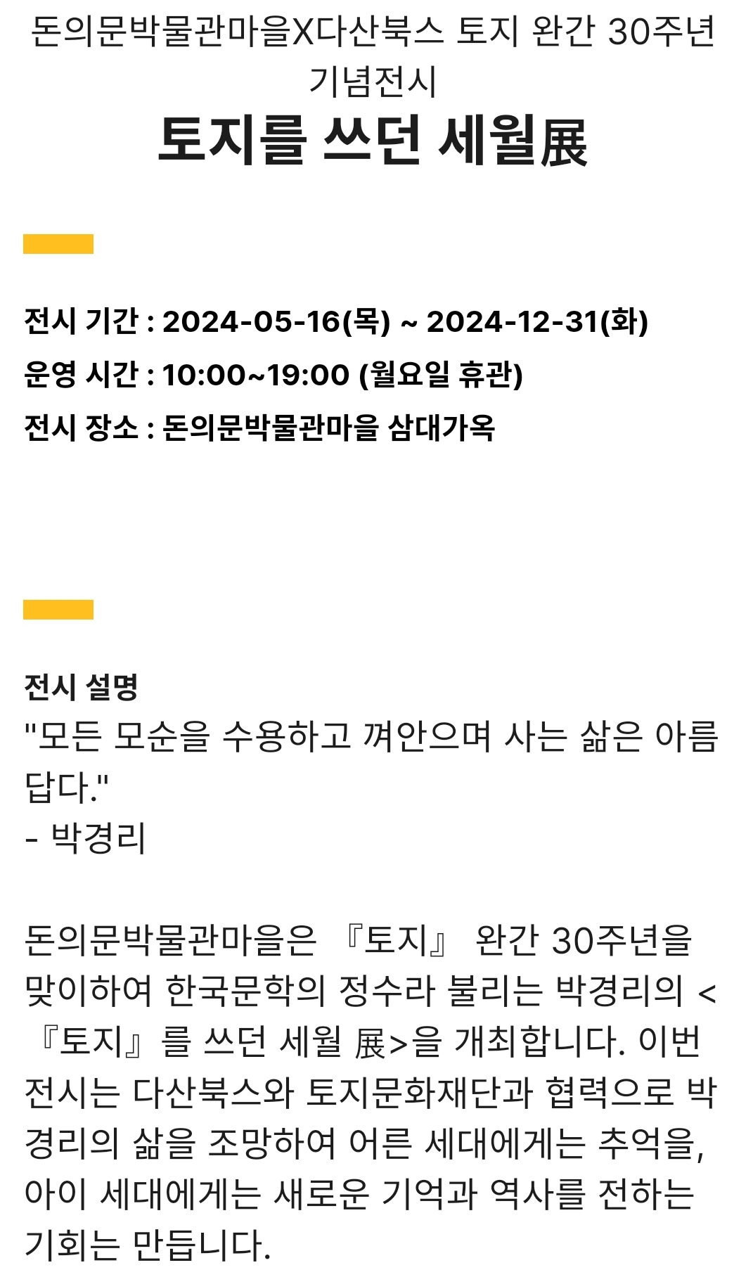토지 완간 30주년 기념 전시회