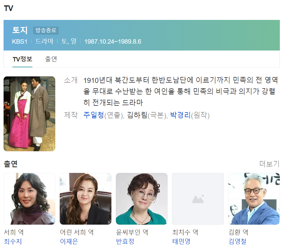 드라마 <토지> DAUM 검색