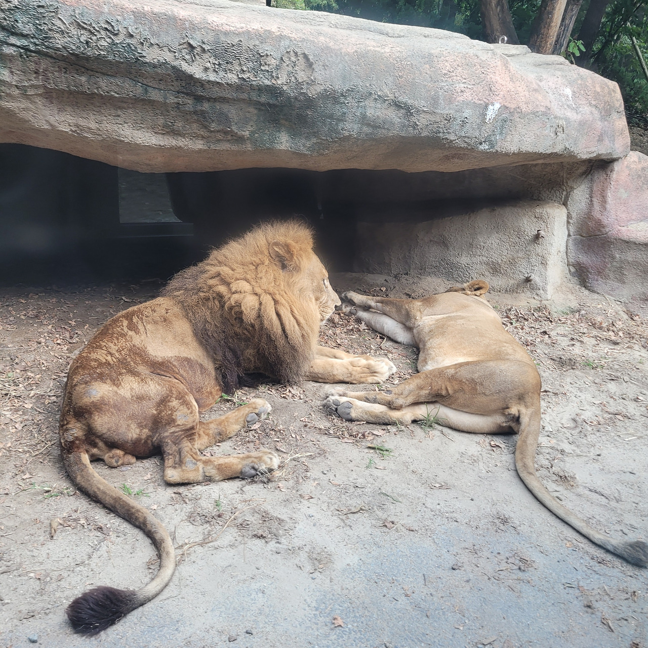 우리는 맨 처음으로 사파리 투어를 했다. 이 투어는 버스를 타고 호랑이, 사자, 곰 등 육식동물이 있는 곳으로 다가간다. 무서운 동물들이라 겁이 났지만 가까이서 보니 신기했다. 나도 이렇게 동물원에 온 적은 엄청 오랜만이었기 때문에 마음이 들뜨고 동물들이 반가웠다. 호두도 겁이 난 것 같았지만 신기해하는 것 같았다. 그런데 호랑이는 야행성이어서 그런지 별다른 움직임이 없어서 아쉬웠다. (나이트 사파리에 맞춰 가면 호랑이들이 엄청 활동적이라고 한다.) 한편 사자들은... 짝짓기 철이었나 보다. 곳곳에서 민망한 장면들이 연출되고 있어서 눈을 둘 곳이 없었다. 호두가 아직 그쪽을 전혀 몰라서 굳이 설명해 주지 않아도 되어 다행이었을 뿐이다.