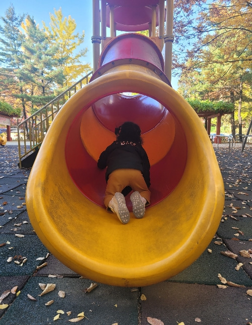 말 그대로 작년 상반기는 감기, 폐렴, 장염, 중이염 등등 애가 정말 많이 아팠었다. 그러고 8월에 한약을 한 첩 먹고 나서 2학기 때부터 건강이 좋아졌다. 그러면서 어린이집에 빠지지 않고 나갈 수 있었고, 하원을 하면 나와 놀이터 원정을 나갔었다. 지금 생각하니 한창 날씨가 좋았던 가을에, 여기저기 아이랑 놀러 다녔던 기억이 좋은 추억으로 남는다. 언제 또 그 시간이 오리오.