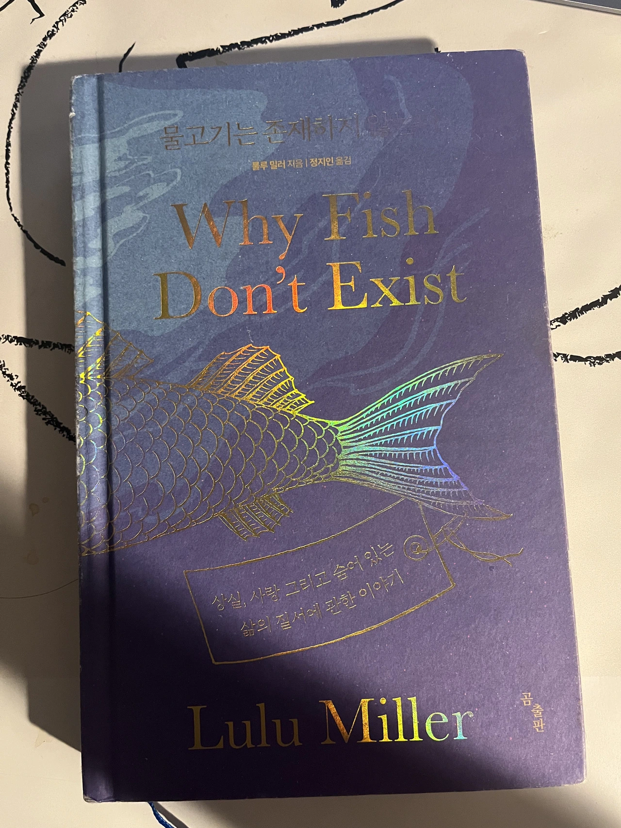 <물고기는 존재하지 않는다>는 과학 라디오 작가 룰루 밀러의 에세이이다. 과학자인 아버지의 영향으로 이 세상에는 아무 의미가 없다는 허무함에 빠진 주인공이 데비이드 스타 조던이라는 과학자의 분명하고 혼돈 없는 인생을 탐구하다 얻은 통찰을 바탕으로 하고 있다. 올해 유튜버 겨울서점의 추천으로 입소문을 타고는 베스트셀러에 등극했으며, 얼마 전 이동진의 파이아키아에서도 이 책을 올해의 책으로 선정하기도 하였다.