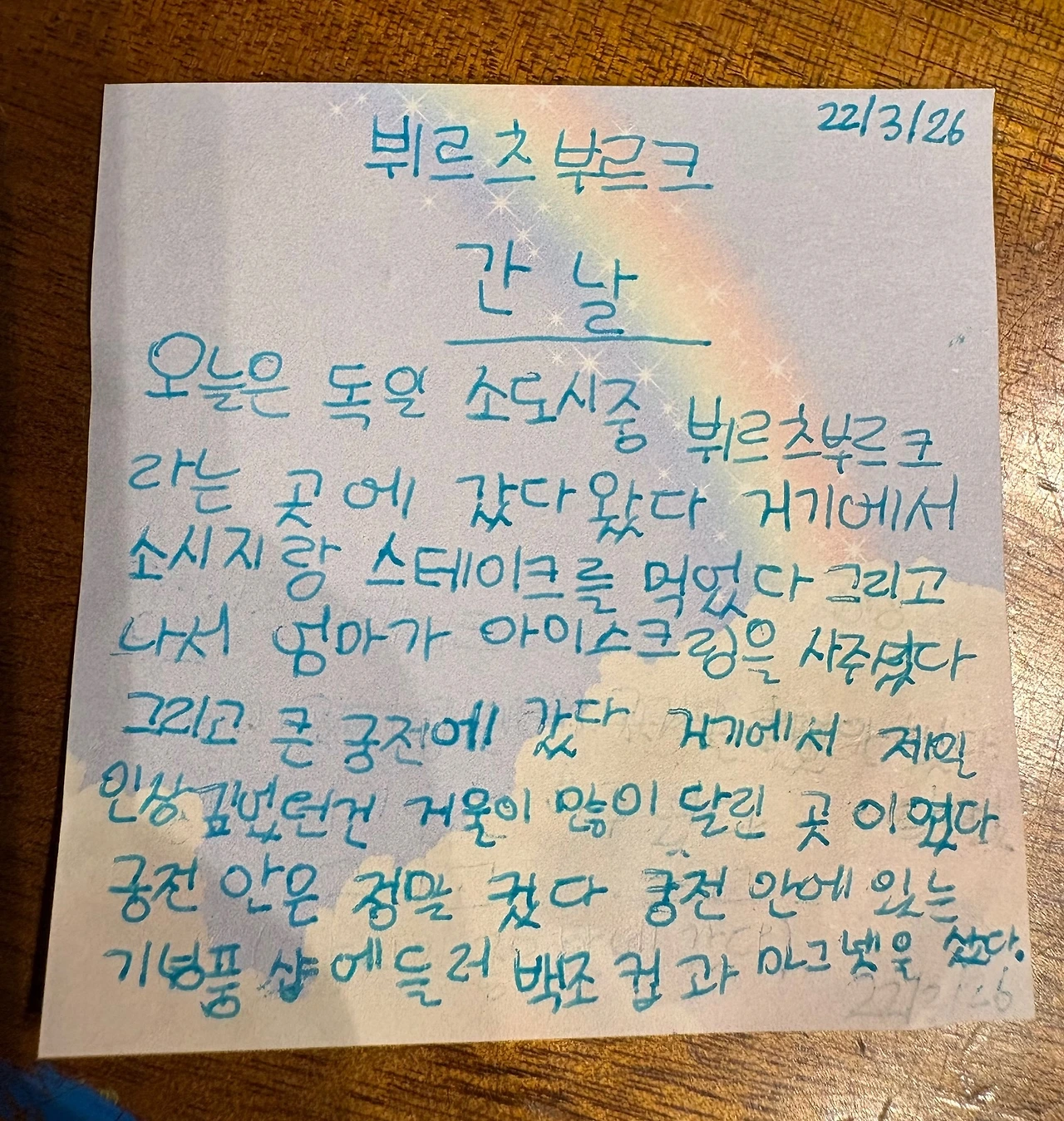 이번 주의 소도시도 날씨 덕에 여운과 감흥이 가득했다. 그녀의 일기 속에는 여전히 먹었던 음식과 기념품 위주의 이야기들로 채워졌지만, 계속해서 보는 눈이 달라지고 넓어지기를 바라본다.