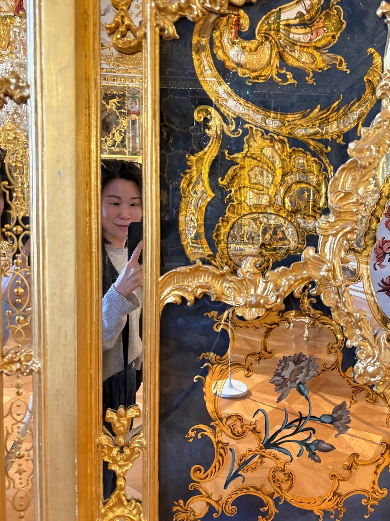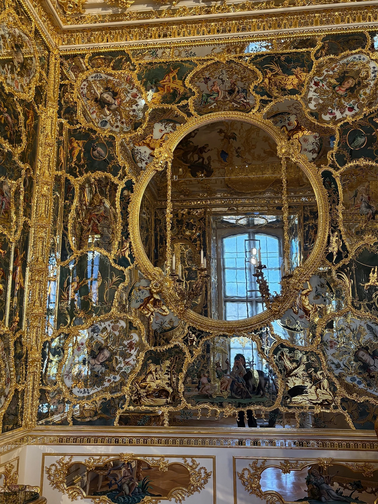둘째, 전쟁으로 90%가 파괴되었던 것을 집요하게 되살려낸 독일 장인들의 집념이다. 잿더미 속에서 흩어진 파편들을 다시 이어 붙이며 원형을 되찾아온 그들의 수고스러운 노동이 없었다면, 오늘날 우리가 마주하는 경이로움도 존재하지 않았을 것이다. 특히 '거울의 방'을 수놓은 화려한 수공예 거울들은 1979년부터 약 9년에 걸쳐 현대의 장인들이 단 한 장 남은 옛 사진과 파편을 토대로 일일이 다시 그려낸 결실이다.