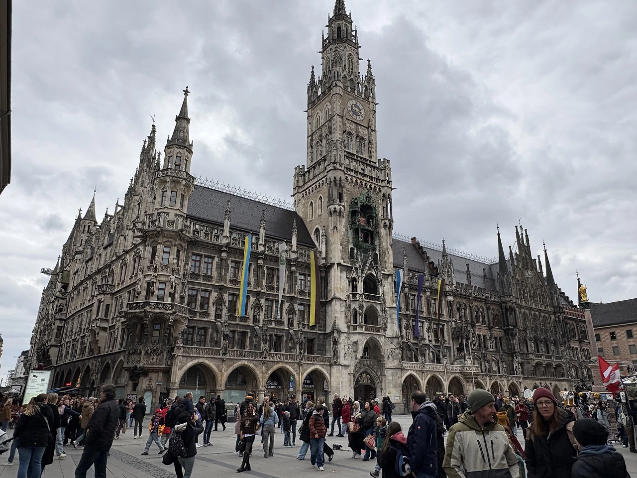 뮌헨은 베를린, 함부르크에 이어 독일에서 세 번째로 큰 도시다. 최근까지 아기자기한 소도시만 다니다가 규모감 있는 대도시를 여행할 생각에 조금은 설레었는데, 역시나... 도착하여 마리엔 광장으로 발걸음을 옮기자마자 느낀 도시의 첫인상은 매우 '컸다'. 광장으로 이어지는 시원하게 뻗은 길과 끊임없이 이어지는 인파. 이스터 휴일 이틀 전인 평일 오후임에도 불구하고 거리는 활기로 가득했다. 프랑크푸르트의 뢰머 광장이나 여러 소도시의 아담한 구시가지 풍경에 익숙해져 있다가, 이 광활한 규모와 에너지를 마주하니 비로소 사람 사는 맛이 느껴졌달까. 영락없는 도시인의 노스탈지아가 해소되는 순간이었다.