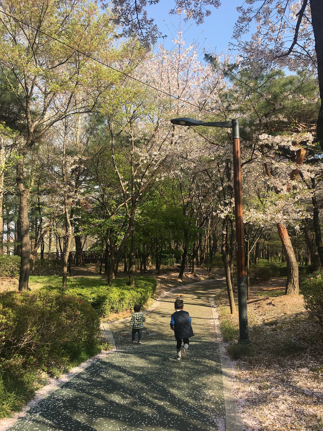 지난주에 어린이 집에 갔다가 공원에 들렀다. 마지막으로 벚꽃을 봤으면 좋겠다 생각해서다. 예상대로 벚꽃은 이미 떨어지기 시작해 만발하지는 않았다. 하지만 푸른 하늘, 깨끗하고 맑은 공기, 선선한 바람의 삼박자가 맞아떨어지는 날 흩날리는 벚꽃 나무 아래 두 아이들의 달려가는 모습은 그야말로 한 폭의 그림이 되었다.