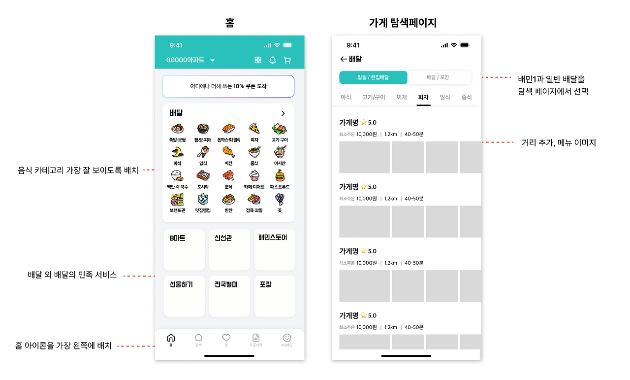 발견한 문제점을 바탕으로 홈, 가게 탐색페이지를 개선해보았다.