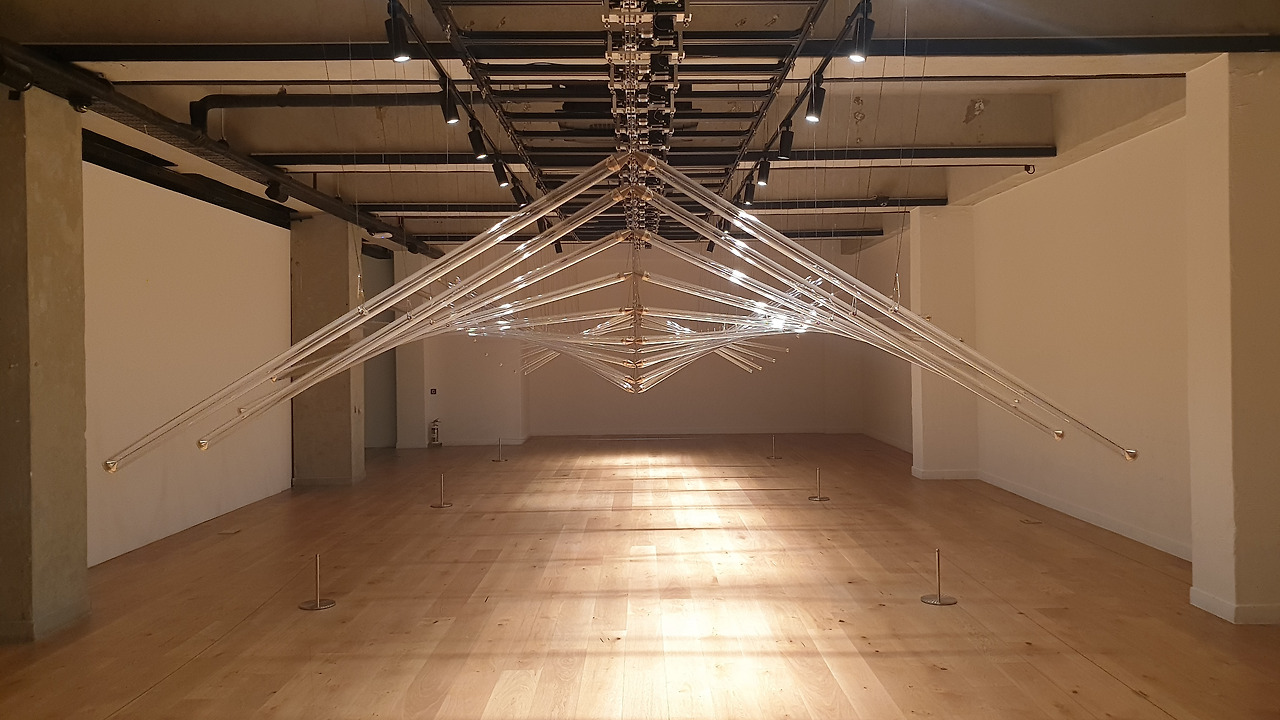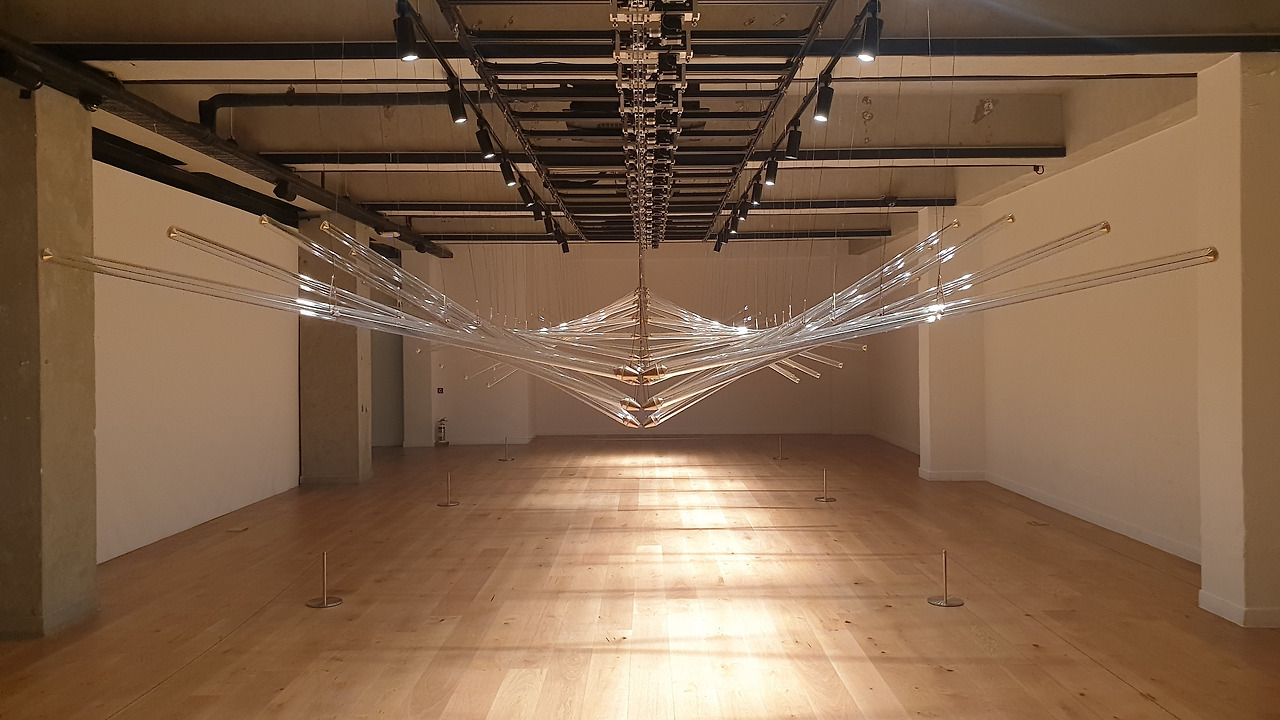 네 번째 작품 〈Amplitude〉는 수백개의 유리관이 모여 공중을 헤엄치는 듯한 광경을 만들어내는 작품이다. 금속과 유리로 된 관은 건드리면 깨질듯한 섬세하고 연약한 겉모습을 지녔는데, 그 골격에 개의치 않고 다른 유리관들과 조화를 이루며 거대한 생명체의 움직임을 보여준다. 몸의 세포들이 모여 기능하는 것처럼, 개개인이 모여 사회를 이루어 살아가는 것처럼 하나는 연약하지만 전체는 강하다는 의미가 보인다.