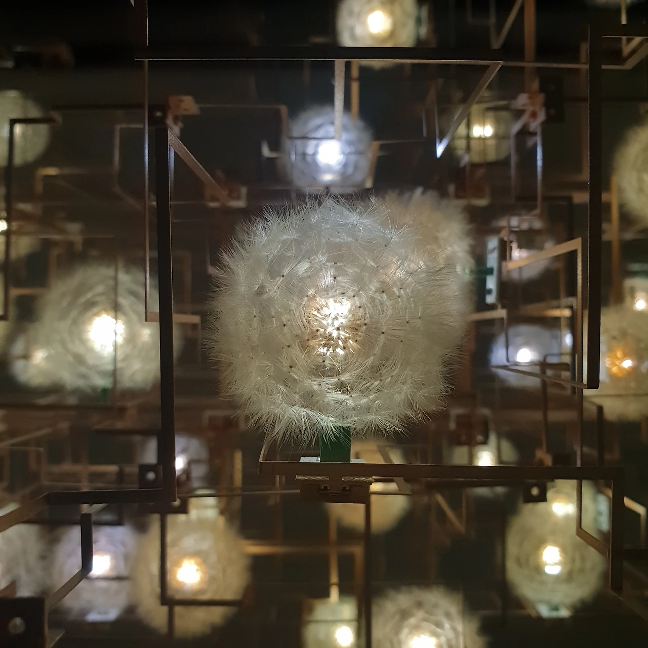 다섯번째 작품 〈Fragile Future〉는 민들레 조명의 군집으로 이루어진 작품이다. 드리프트 듀오는 민들레 홀씨가 맺힐 시기쯤 이것들을 수확한 다음, 홀씨를 하나하나 떼어내 LED 전구에 붙였다. 기술 분야에 무지한 내 눈으로 보았을 때, 정교한 기술 메커니즘이 필요한 앞의 두 작품과 다르게 이 작품은 비교적 간단한 기술로 형태를 구현한 것 같았다. 그럼에도 불구하고 이 작품이 드리프트의 대표작 중 하나로 손꼽히는 것은, 복잡한 기술에 맞먹는 고도의 수공예적 과정이 사람들에게 인정받았다는 증거일 것이다.