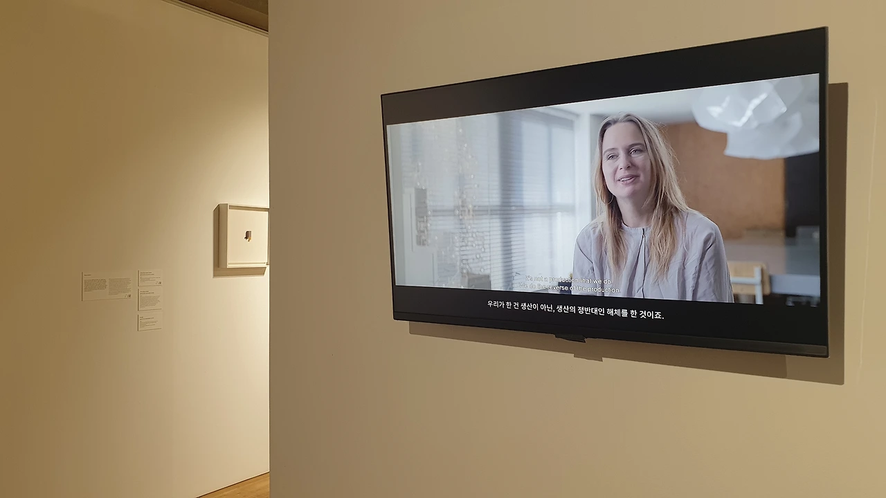리셉션 맞은편. 전시장 입구에 있는 인터뷰 영상