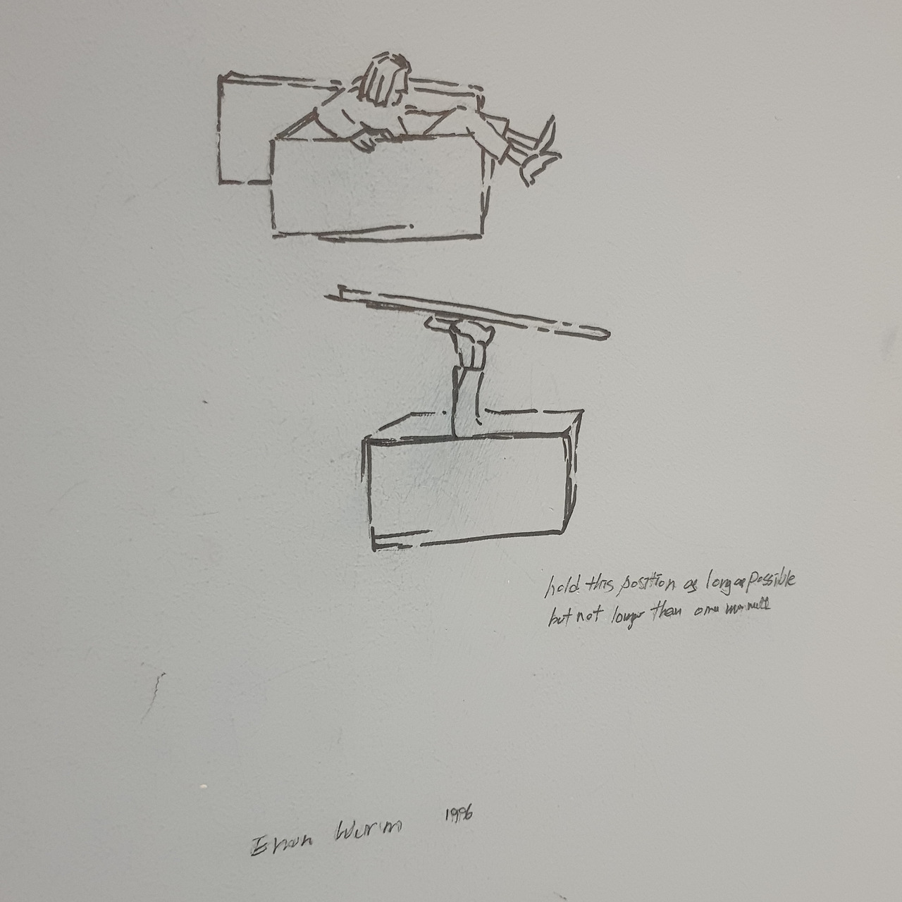 2부에서는 작가의 대표 작업인 '1분 조각' 시리즈를 볼 수 있다. 1분 조각은 어떤 구체적인 형태가 있는 조각 작품이 아니다. 작가는 관객에게 어떤 행위를 하도록 지시한다. 전시장 곳곳에 작가가 직접 글과 그림을 드로잉한 지령이 적혀 있고, 그 옆에는 지령을 수행하는데 필요한 공산품들이 놓여 있다. 예를 들면 '머리, 양 무릎, 양손을 사용해 5개의 수세미를 벽에 붙이기' 같은 지령이다.