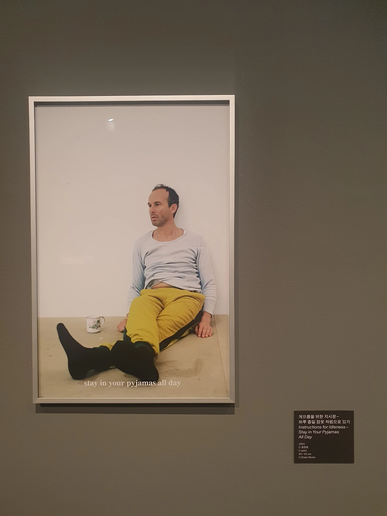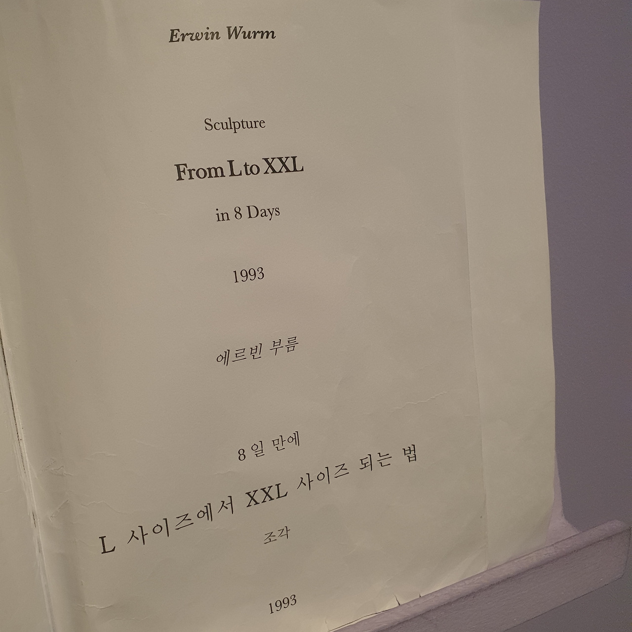 이 지령을 수행하다 보면 우스꽝스러운 자세를 취하게 되고, 물건을 떨어뜨리기도 하면서 전시장이 왁자지껄해진다. 전통적인 미술관의 분위기와는 전혀 다른 놀이터 같은 분위기가 돈다. 처음에 지령을 읽고, 혼자 전시를 보면서 머쓱해진 나는 지령을 수행할 생각을 전혀 하지 않았고 다른 사람들도 그럴 거라고 생각했다. 그런데 예상과 달리 친구들과 함께 온 다른 관객들은 너도나도 다 같이 작가의 지령을 수행하고 서로 사진과 영상을 찍으며 스스로 조각이 되고 있었다. 전시에 대한 관심이 정말 많은 사람이라고 자부했는데 정작 이 전시를 가장 즐기지 못하고 있는 사람이 나라는 게 충격이었다. 더불어 사람이 적은 평일 오전에 갔어도 이와 같은 풍경이 펼쳐졌을까, 하는 의문이 들면서 사람이 많은 오후 시간대에 간 것이 무척 행운이었다는 생각이 들었다.