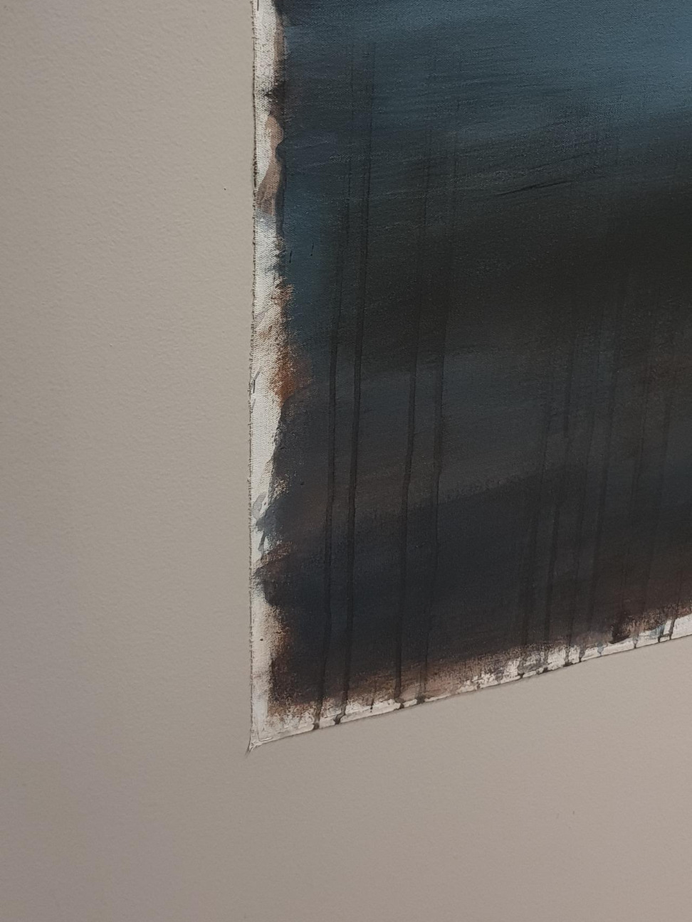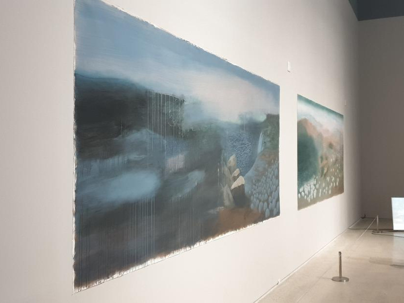 ‘1. 징후와 증상’에서는 두 개 작품이 서로 상호 보완적으로 전시된 장면이 기억에 남는다. 기둥을 둘러싸고 있는 긴 그림이 있었는데, 이 그림을 감상하며 기둥을 중심으로 빙 돌면 그림이 끝나는 지점에서는 기둥에 걸린 작은 큐브 형태의 작품이 이어져 나온다. 다른 작품들에 비해 왜소한 크기의 이 작품은, 기둥을 중심으로 한 동선과 기둥 자체를 액자로 사용한 덕분에 스케일이 큰 다른 작품들과 비교했을 때 왜소해 보이지 않게 된다.
