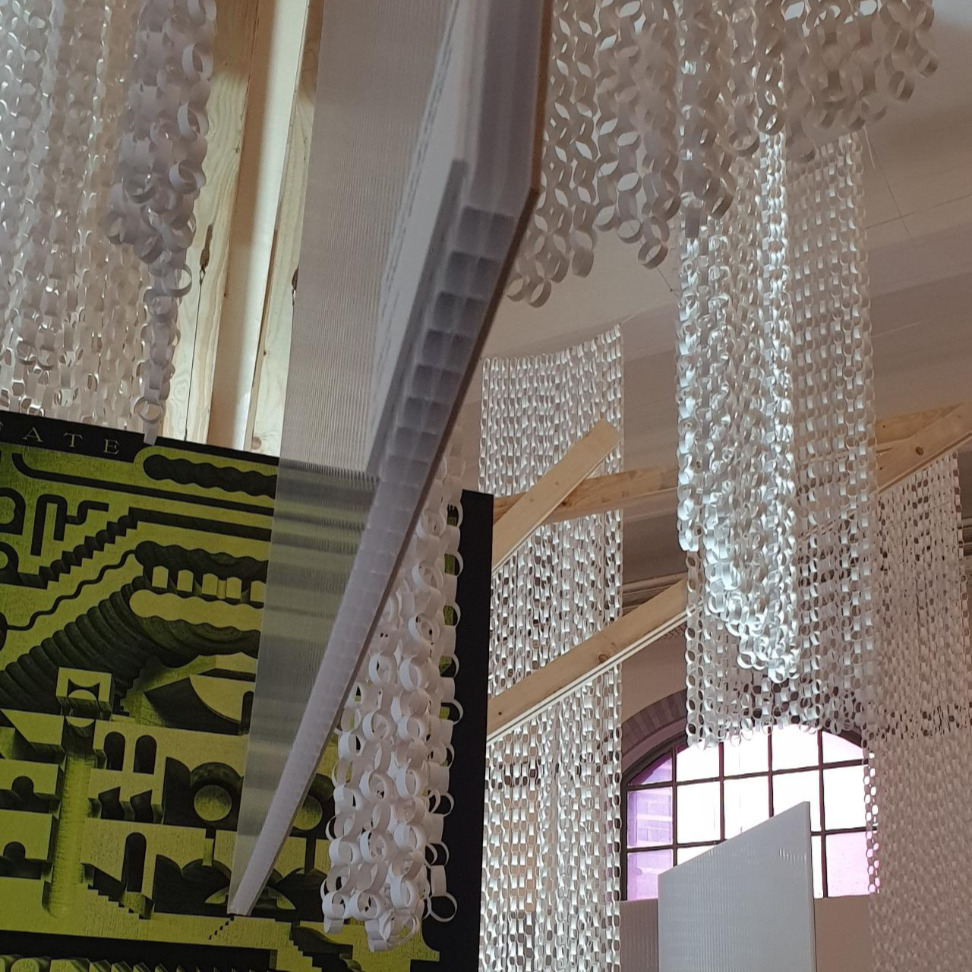 파트 1 전경(왼), 폴리카보네이트판과 종이 고리(오)