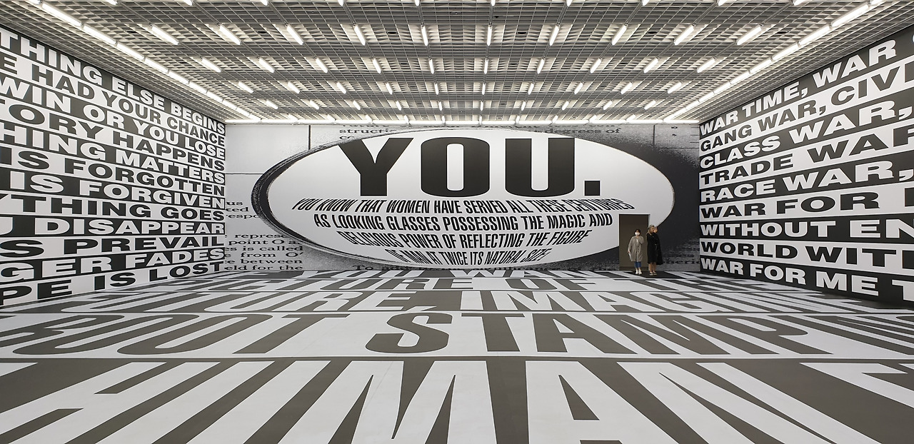 《바바라 크루거: Forever》에서 미술관은 관객이 최상의 상태에서 전시에 집중할 수 있도록 배려한다. 우선 전시장에 들어서기 전 라커룸과 화장실의 위치, 그리고 오디오 가이드의 사용법을 안내받는다. 오디오 가이드는 티켓만 있으면 누구나 앱을 다운로드하여 이용할 수 있어 추가로 비용을 낼 필요가 없다. 무거운 짐을 덜어내고 전시장에 들어서면 탁 트인 층고와 광활한 넓이가 기분을 환기해준다. 전시장이 지하에 있고 창이 없음에도 불구하고 답답하다는 느낌은 전혀 들지 않는다. 오히려 넓은 평지가 펼쳐져 있으니 무작정 걷고 싶은 마음이 든다. 작품들은 최소 두세 걸음씩 떨어져 있고, 필요에 따라 한 전시실에 한 작품만이 놓여있기도 하다. 이렇게 되면 같은 면적의 전시장에 설치되는 작품의 수가 일반적인 전시에 비해 현저히 적어진다. 그래서 전시장 전체적으로 작품이 꽉 차지 않고 여유롭게 놓여있는 느낌이다. 관객은 편안한 분위기 속에서 하나의 작품에만 온전히 집중할 수 있고, 주변의 여유 공간 덕분에 작품의 여운 또한 충분히 음미할 수 있다. 작품에 대한 정보를 제공하는 캡션 또한 어려운 어휘 없이 쉽게 읽힌다. 현대미술을 감상하는데 장벽이 되는 것 중 하나가 작가의 의도를 파악하기 힘들다는 것인데, 아모레퍼시픽 미술관은 작품마다 작가의 의도가 무엇인지 명확하게 표기해두었다. 전시를 관람하고 나면, 다양한 부대시설이 관객을 맞이한다. 지상층에 아트샵이 있고 미술관 문을 열고 로비로 나오면 쉬어갈 수 있는 의자와 카페, 그리고 도서관 등 다양한 성격의 부대시설이 있다. 특히 도서관에서는 한국뿐만 아니라 세계에서 진행한 전시의 도록을 전문으로 취급하기 때문에 전시를 본 관객이 자신의 흥미를 바탕으로 자료를 찾아보기에 적합하다. 이렇게 미술관과 부대시설들은 비전공자와 전공자 모두에게 매력적인 공간이다.
