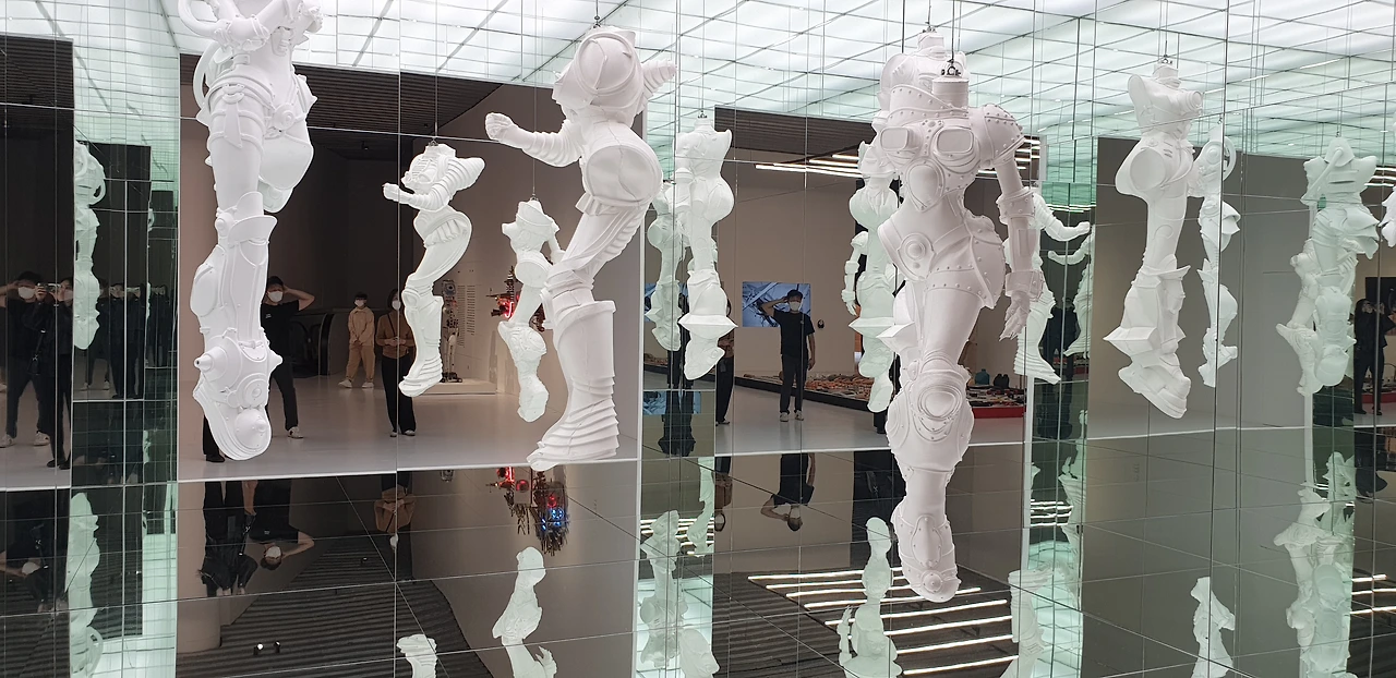 지상층에서 작품 앞에 서면 미래적인 사운드가 흘러나오면서 우리가 디스토피아 영화에서 봤을 법한 주제와 이미지들을 볼 수 있다. 그중 인간의 신체를 무한거울이 반복되는 방 안에 설치한 이불 작가의 작품은 인간이 인간으로서의 가치를 잃어버리게 되는 주제를 잘 표현한 디스플레이라고 느꼈다.