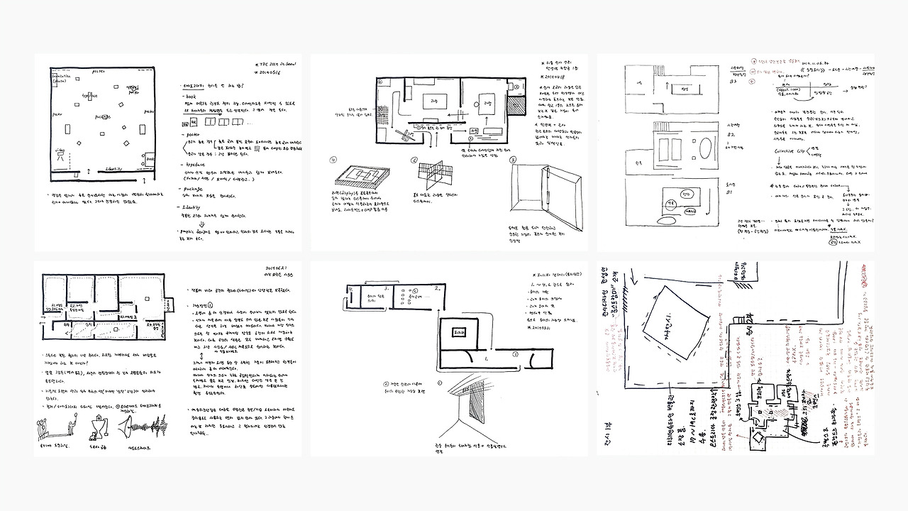 중고등학생 때부터 전시 보는 것을 좋아했다. 시험이 끝나고 친구들이 놀이공원에 갈 때 나는 전시를 두세 편씩 몰아 봤다. 취미가 이렇다 보니 자연스럽게 전시를 만들 수 있는 공간디자인을 전공하기로 했는데, 꿈을 정했으니 뭔가 관련된 공부를 해야 할 것 같았다. 그래서 전시를 보고 집으로 돌아오는 길에 전시장이 어떻게 생겼었는지 머릿속으로 시뮬레이션을 돌렸다. 집에 도착해서는 리플렛과 찍어온 사진을 지도 삼아, 격자무늬 종이에 도면과 작품 위치를 생각나는 대로 그리고 이에 관한 의견을 썼다. 사진만 찍었을 때는 작품을 기억하는 정도에서 그쳤지만 손으로 기록하니 전시에 대한 내 생각을 표현할 수 있었다.