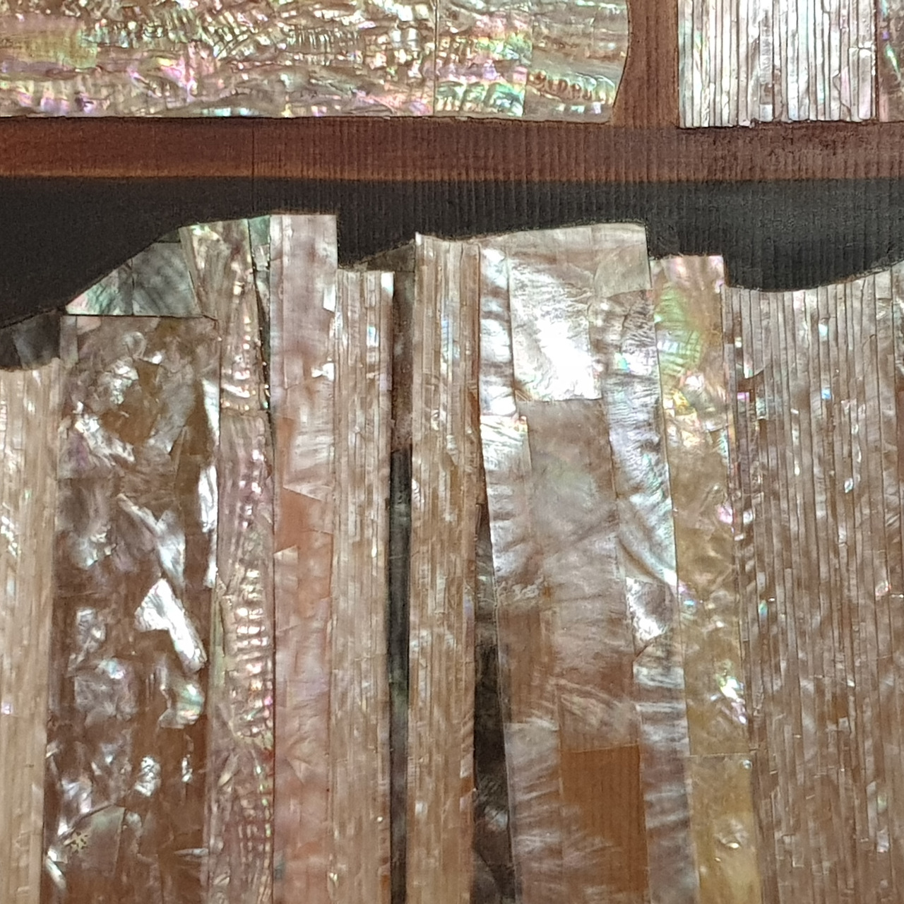 갤러리는 마치 책가도 안에 들어온 듯한 느낌을 준다. 책가도라는 장르가 책에서부터 시작된 것이다 보니 작품에서도 책의 결과 겹이 느껴지는 것들이 많아서, 공간 역시 이 느낌을 휴먼스케일로 연장해 벽들이 여러 레이어로 겹친 형태로 되어 있다. 작품과 공간이 종이-책-서가-병풍-벽으로 이어지며 하나가 되는 것이다. 이 벽들은 막혀있기도 하고 프레임만 두고 비어있기도 해 공간의 강약을 적절하게 조율한다. 이렇게 작품의 연장선상이 되는 공간은 공간을 거니는 관객과도 물아일체를 이루며 전시 기획을 몸소 느낄 수 있도록 한다.