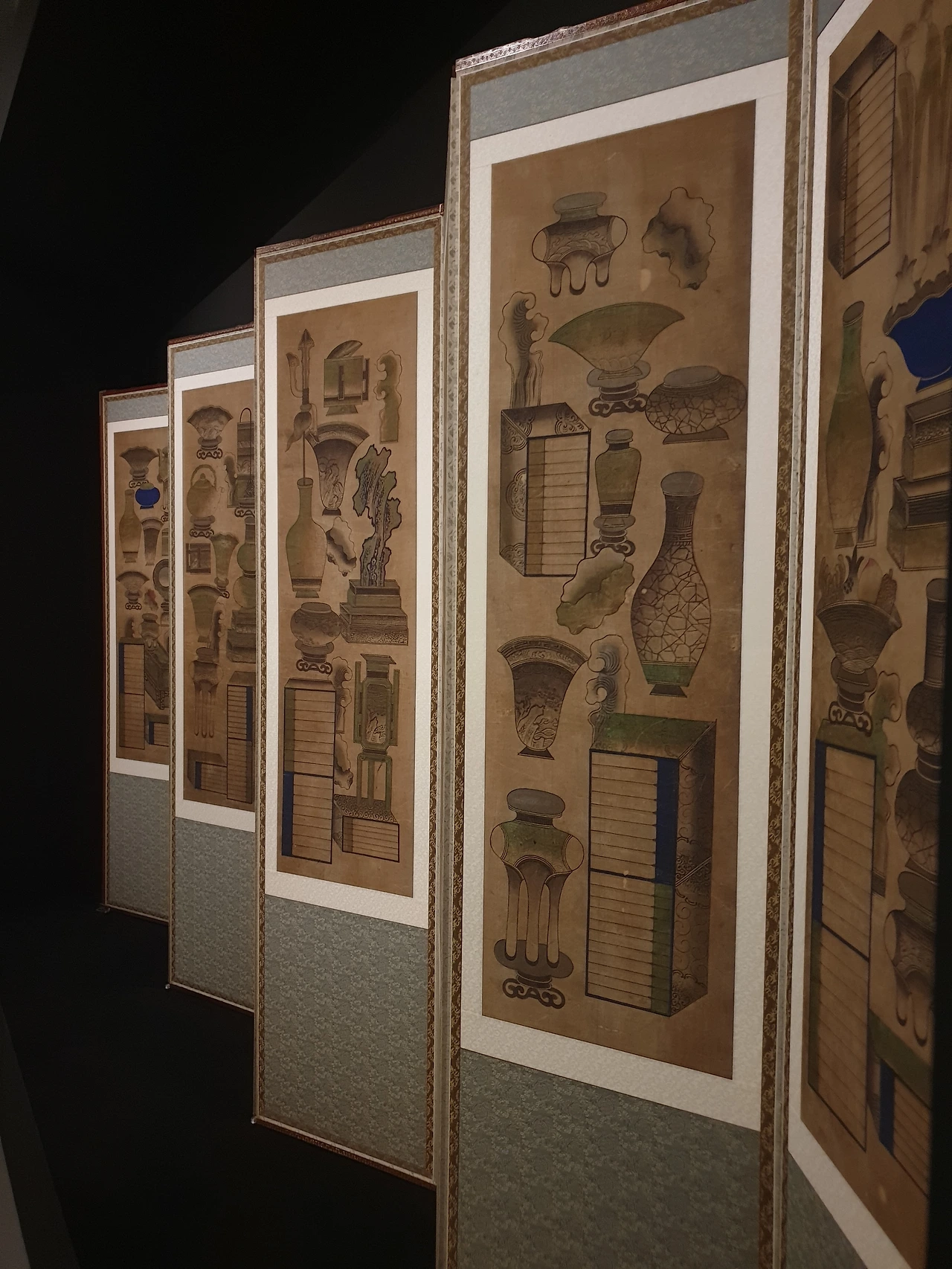 책가도는 여러모로 흥미로운 지점이 많은 장르이다. 책가도가 다루는 주제도 그렇지만, 무엇보다도 투시도법으로 입체감을 주고 사람보다 큰 키의 종이나 병풍에 그려져서 그림이지만 입체적인 성질이 강하다는 점에서 그렇다. 이번 전시는 책가도의 의미와 형식적인 특징을 각각 기획과 디자인에 잘 반영해 조화로웠다. 전시를 보면서 취향의 물아일체뿐만 아니라, 기획과 디자인의 물아일체를 느껴보는 것도 좋겠다.