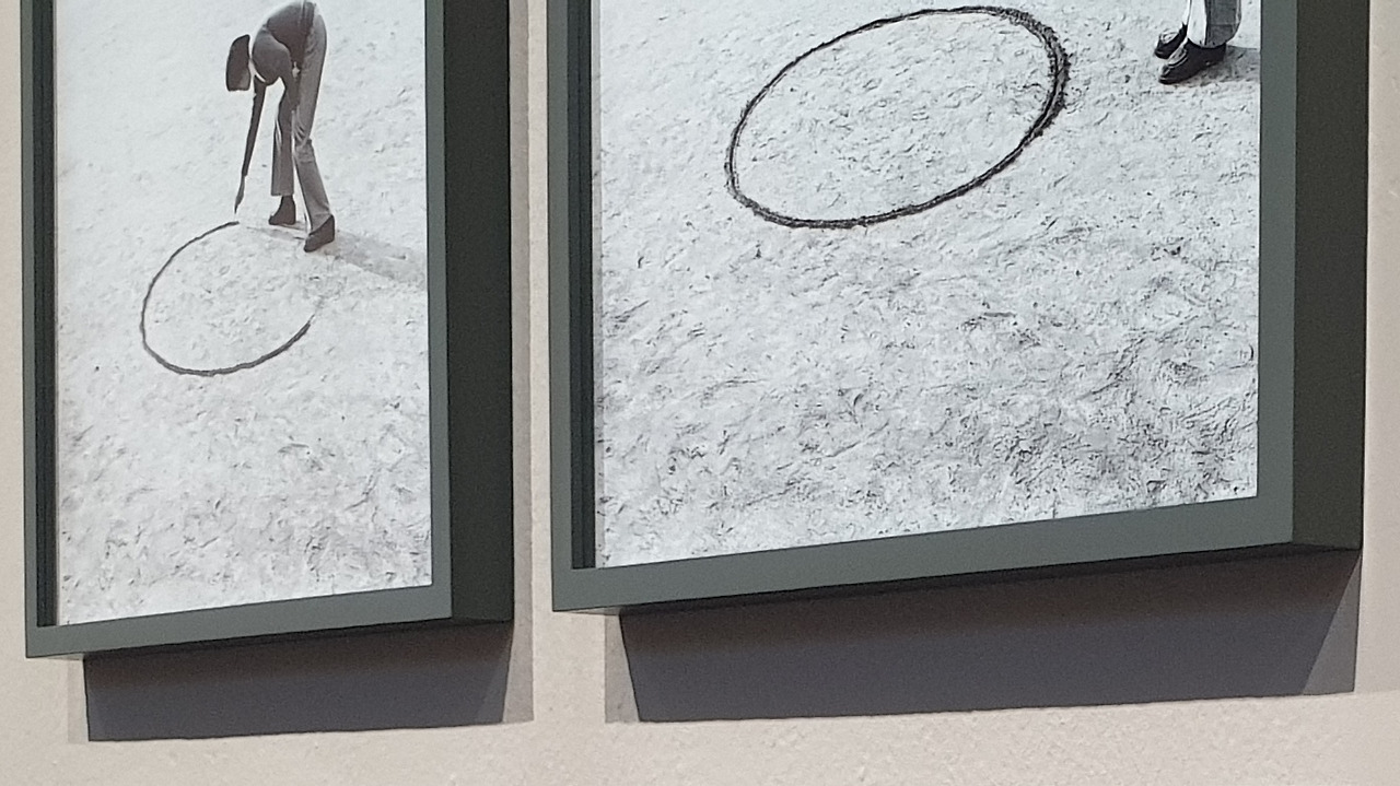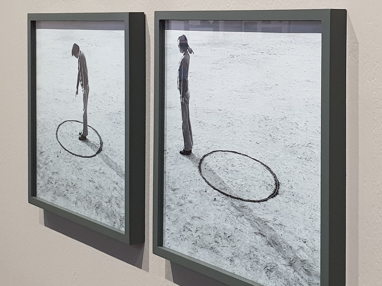 〈애절한 사랑의 대 서사시를 쓸 수 있게끔 고안된 거대한 원고지〉 마지막으로, 섹션 3에서는 지시대명사를 활용한 〈장소의 논리〉라는 작품이 기억에 남는다. 작품은 땅에 원을 그려놓고 작가가 원의 안, 밖, 원의 경계 등에서 원 내부를 다르게 지칭하는 모습을 담은 퍼포먼스이다. 작가의 위치에 따라 같은 대상이 다르게 불리는 언어의 속성을 재료로 사용했다는 점에서 이번 전시와 연관성이 깊었다.