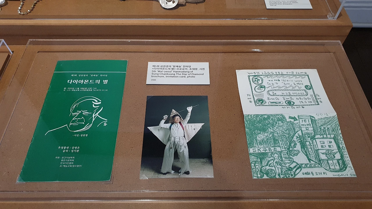 섹션 2 '야오씨와의 대화: 말+예술'은 성찬경이 일반적인 시 낭송회를 넘어 퍼포먼스로 승화한 '말예술'을 소개하는 공간이다. 이곳에는 성찬경이 진행한 말예술 퍼포먼스의 초대장, 리플렛, 현장 사진 및 소품이 아카이브 되어 있다. 특히 작가가 직접 그린 초대장은 매번 다른 디자인으로 그려져 하나하나 살펴보는 재미가 있다.