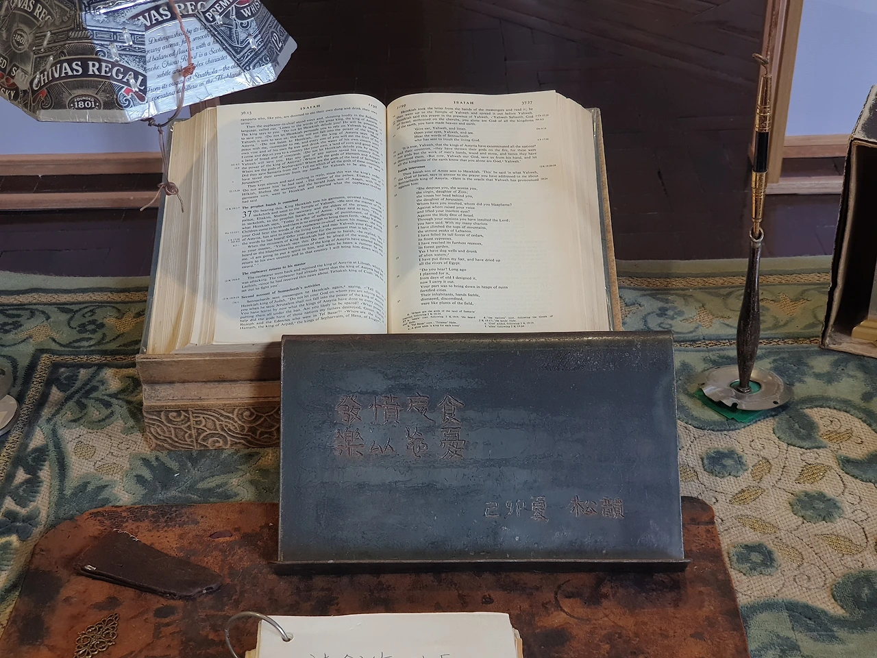 청금루 재현 공간(좌), 발분망식 낙이망우가 새겨진 독서대(우)